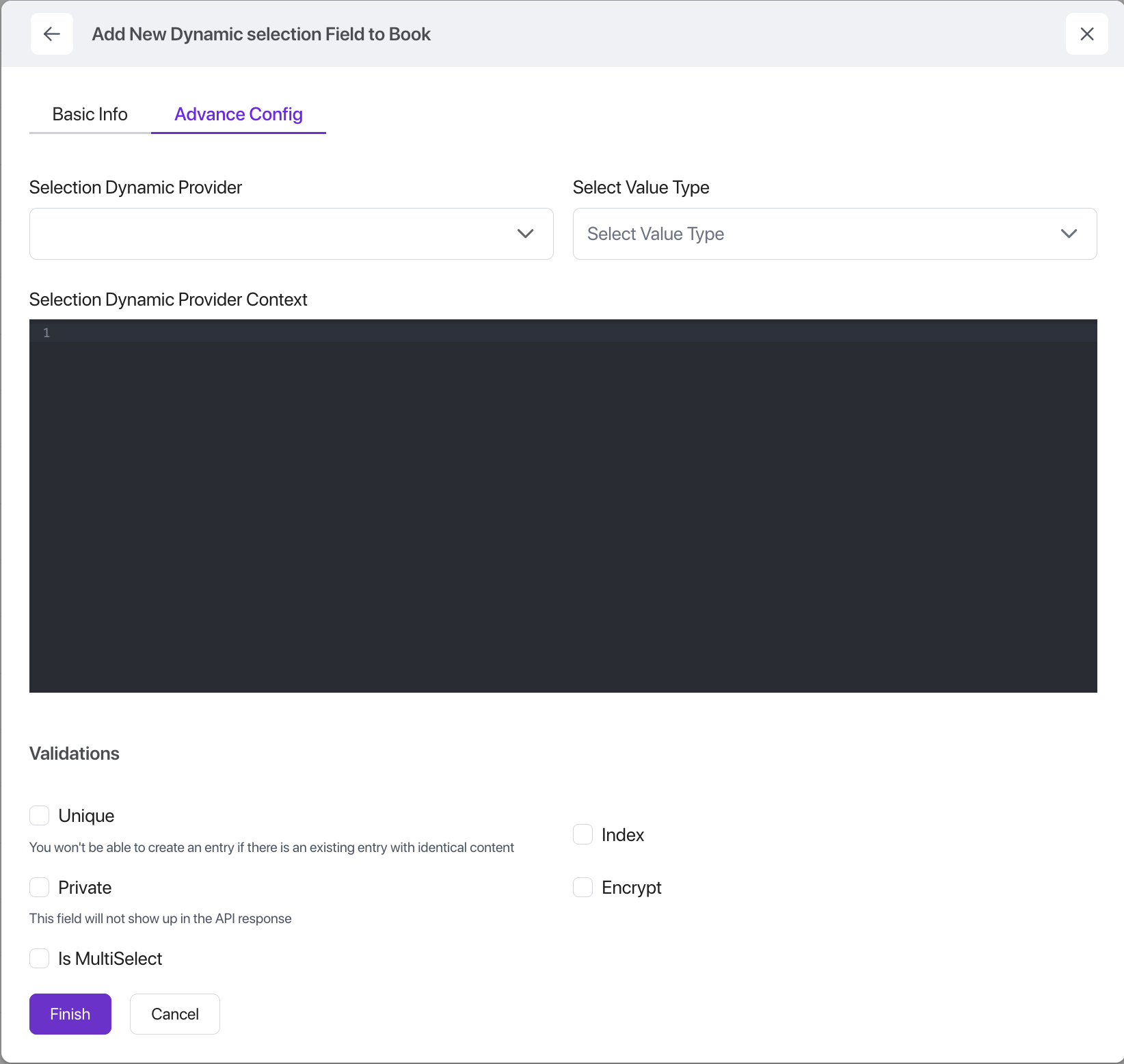 Note: Developers can create and register custom SelectionDynamicProvider services easily. More details and example implementations are available in the developer documentation.