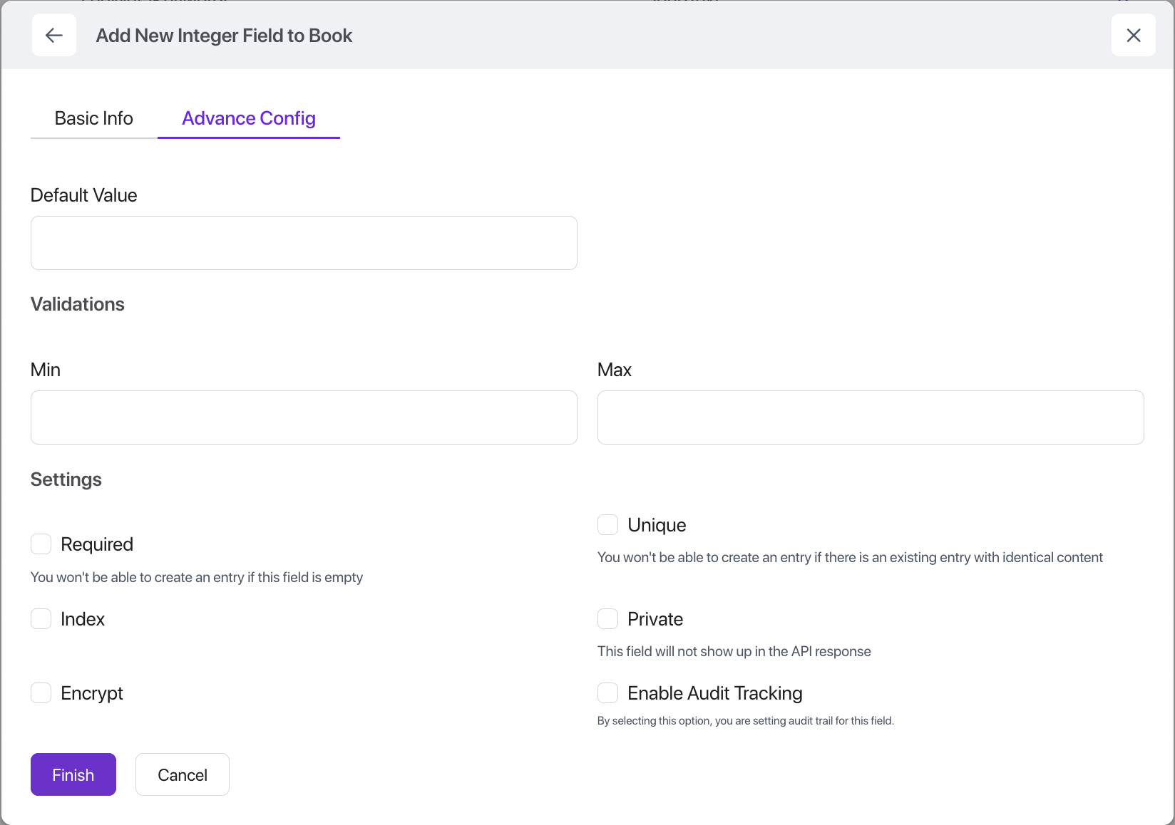 The Integer field type in SolidX is designed to be flexible, secure, and highly configurable. It supports a range of built-in options that make it easy to enforce data integrity, enable advanced features, and respect security boundaries.