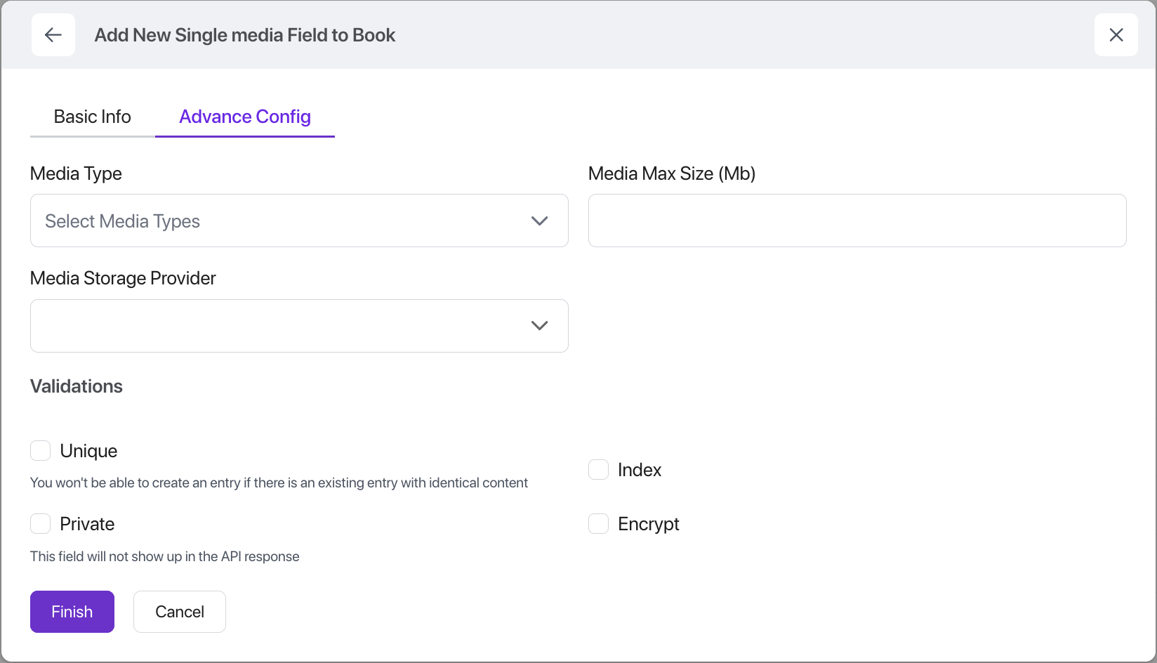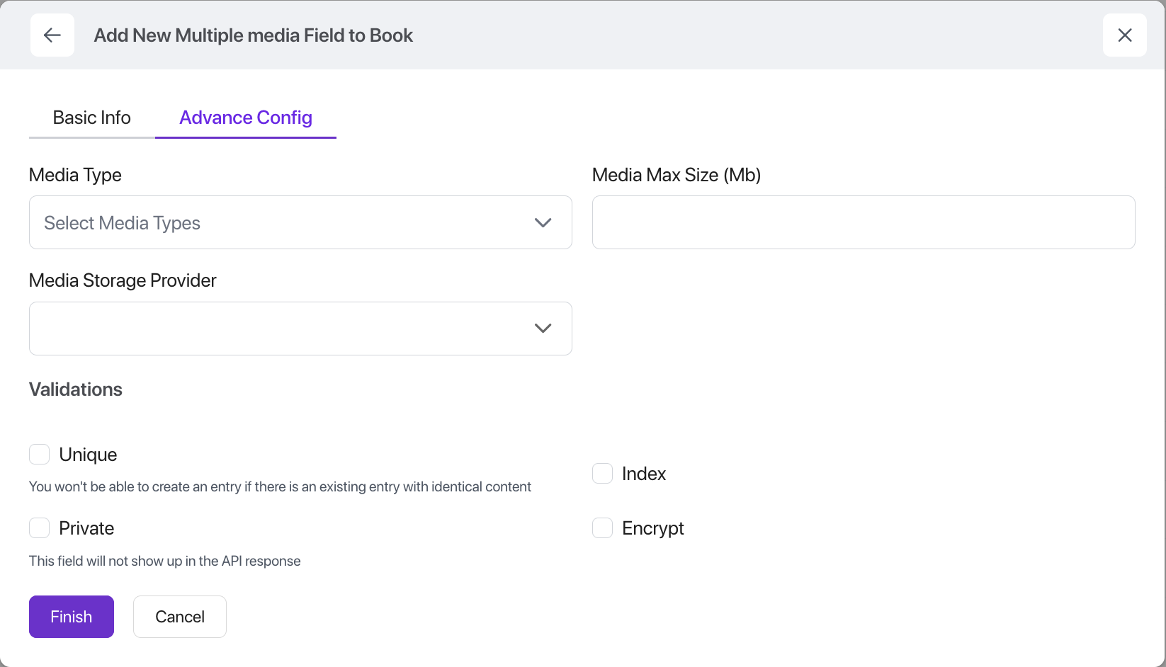 All options available for Media Single fields are also applicable to the Media Multiple field.