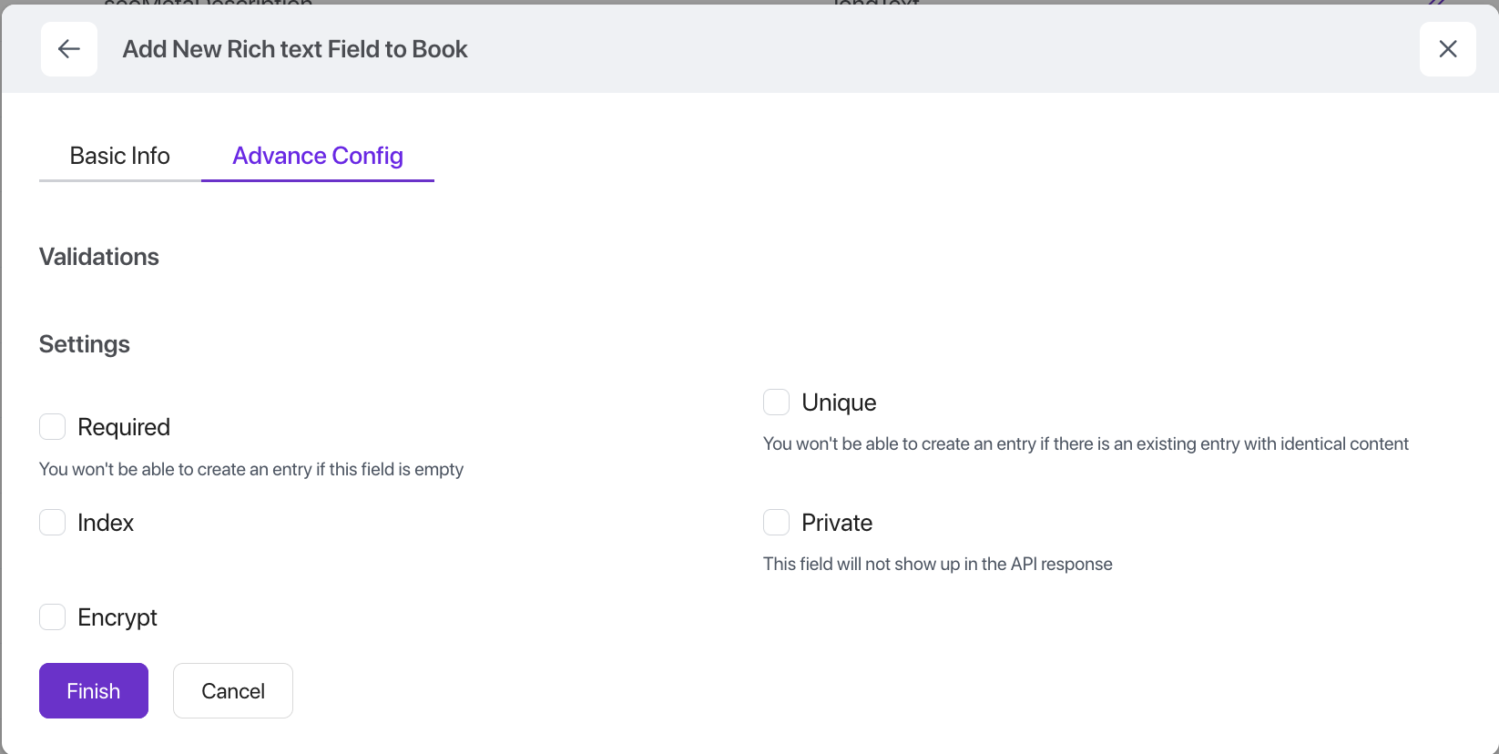 Rich Text fields allow users to input and store formatted content—including bold, italics, lists, links, and more—making them ideal for articles, documentation, or any content that requires styling.