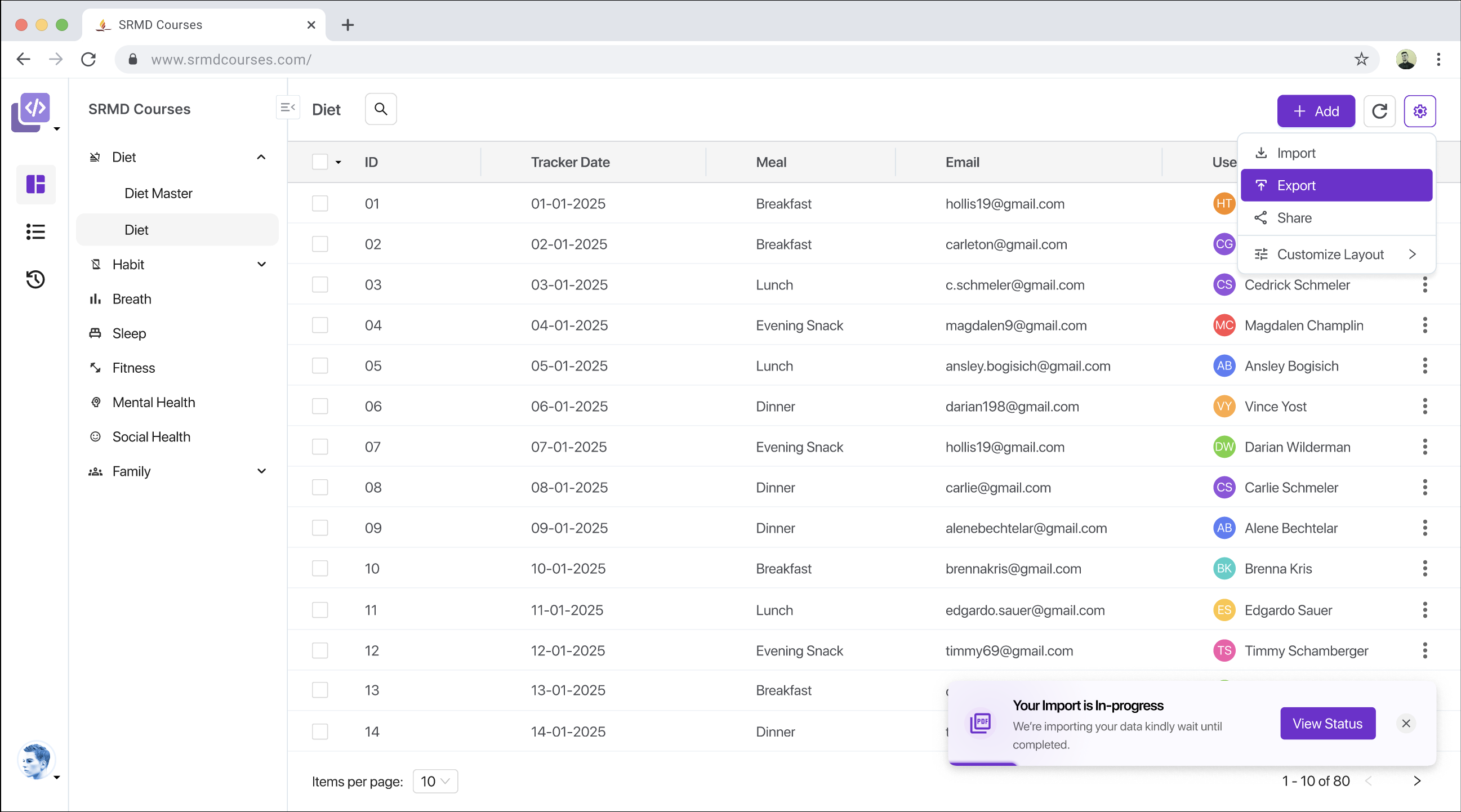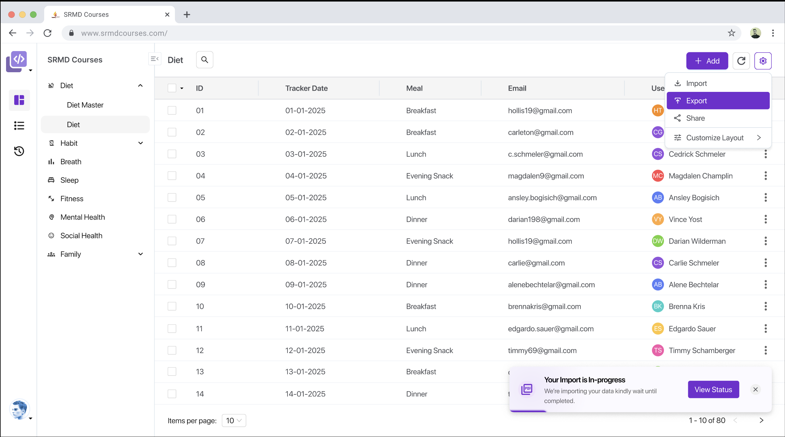 Users can import records in bulk via structured files. Field mapping, validations, and error handling are supported out of the box. The import functionality is completely dynamic and metadata driven based on how you have configured your model & fields.