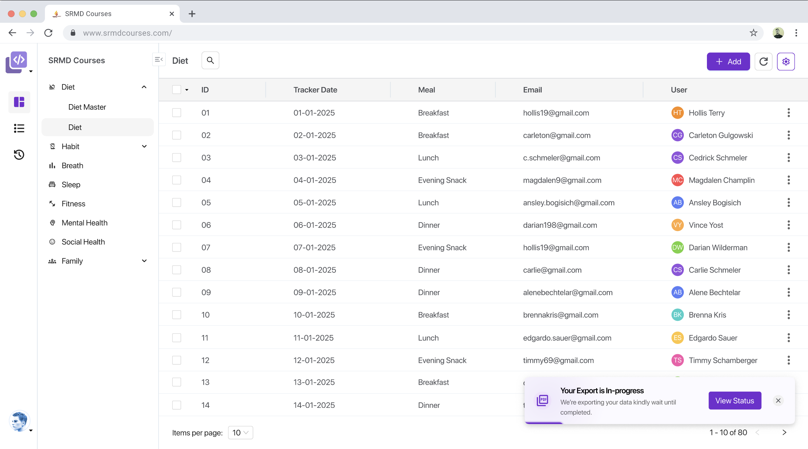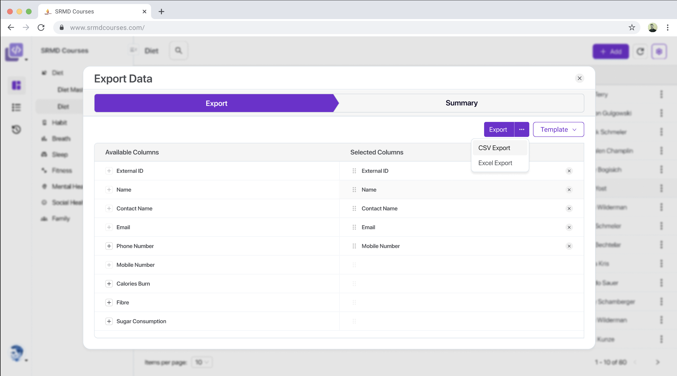 Data can be exported in standard formats such as CSV or Excel. This allows external analysis or record-keeping. The export functionality is completely dynamic and metadata driven based on how you have configured your model & fields.
