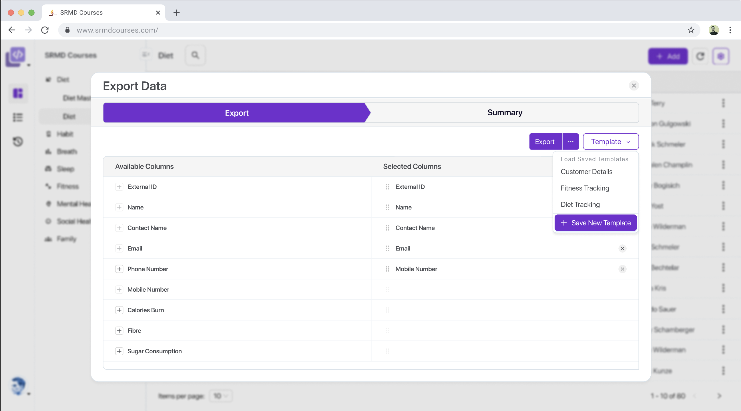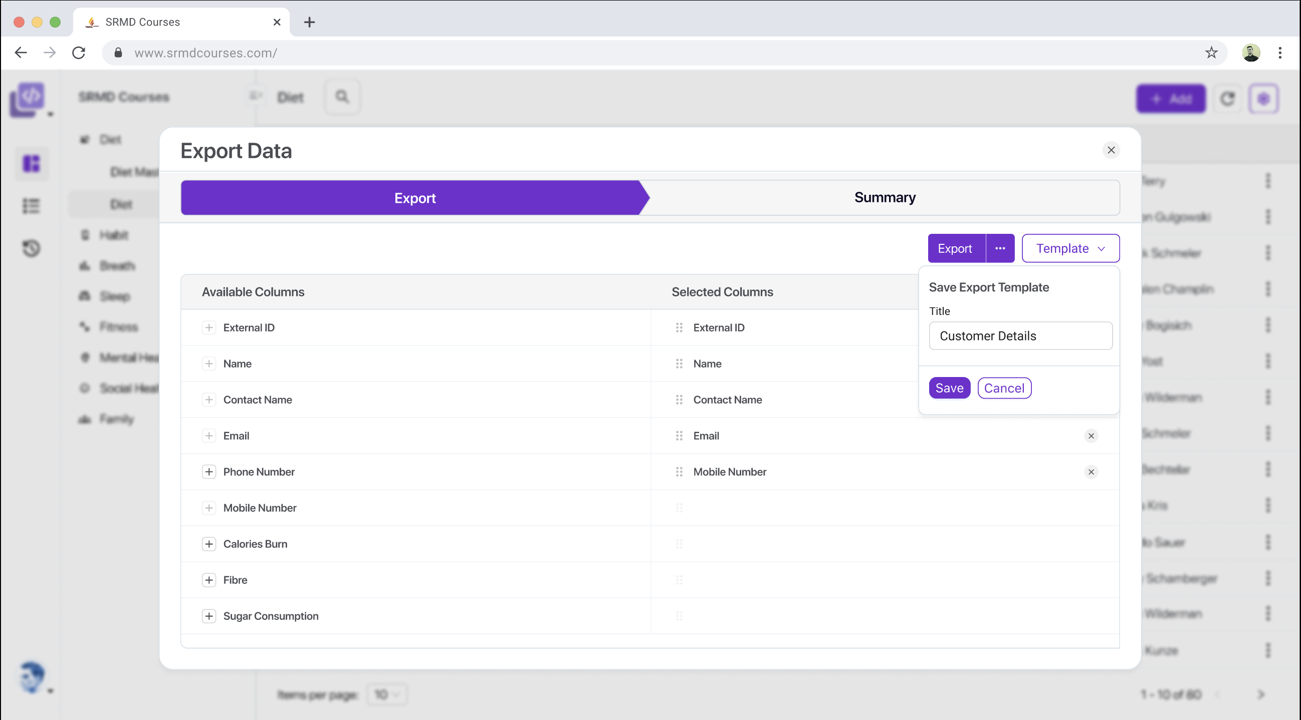 One can choose to save this export configuration as a named template to be re-used later.