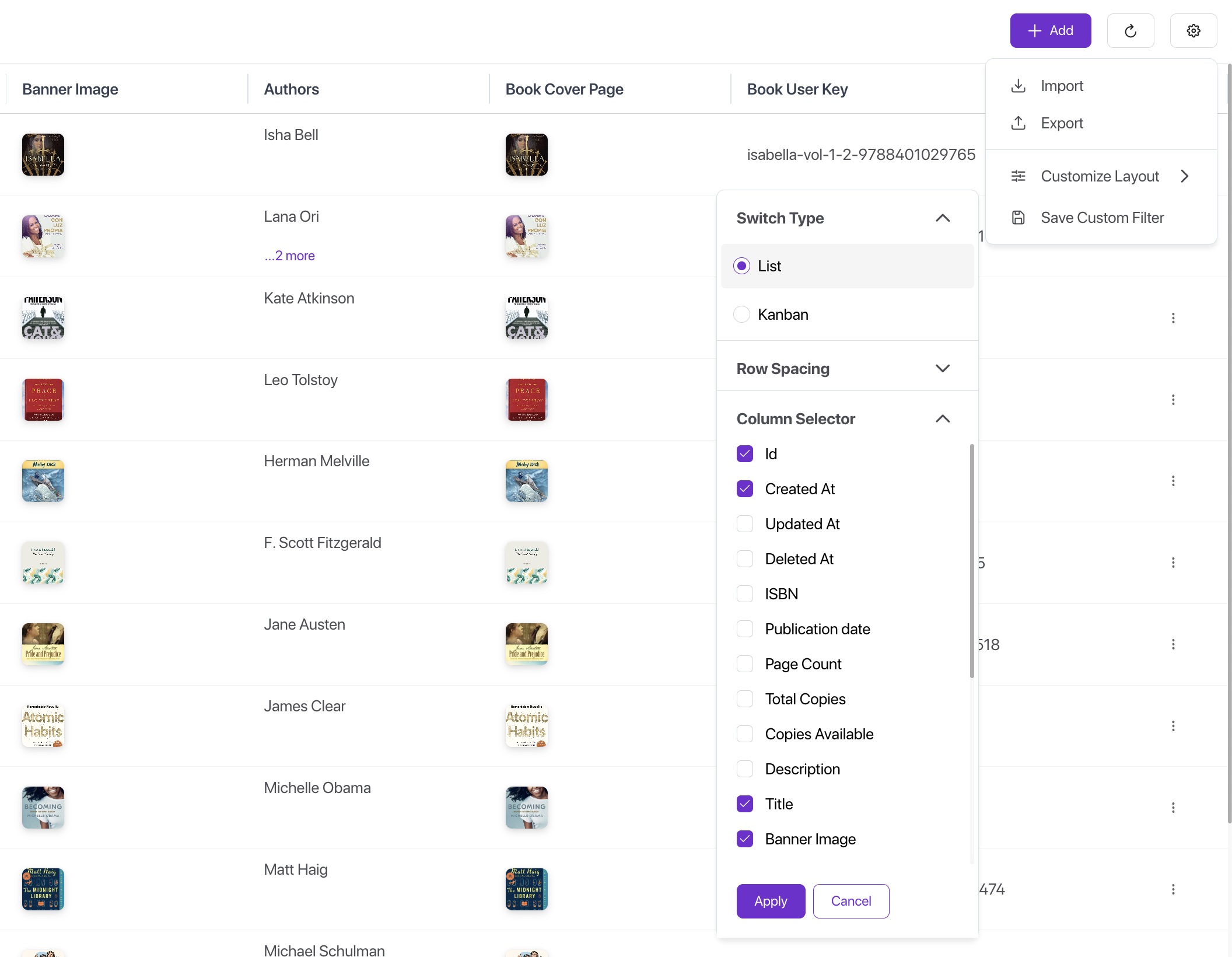 This view supports robust features such as searching, filtering, sorting, pagination, data import/export, and custom actions—making it ideal for managing large collections of data with ease and flexibility.